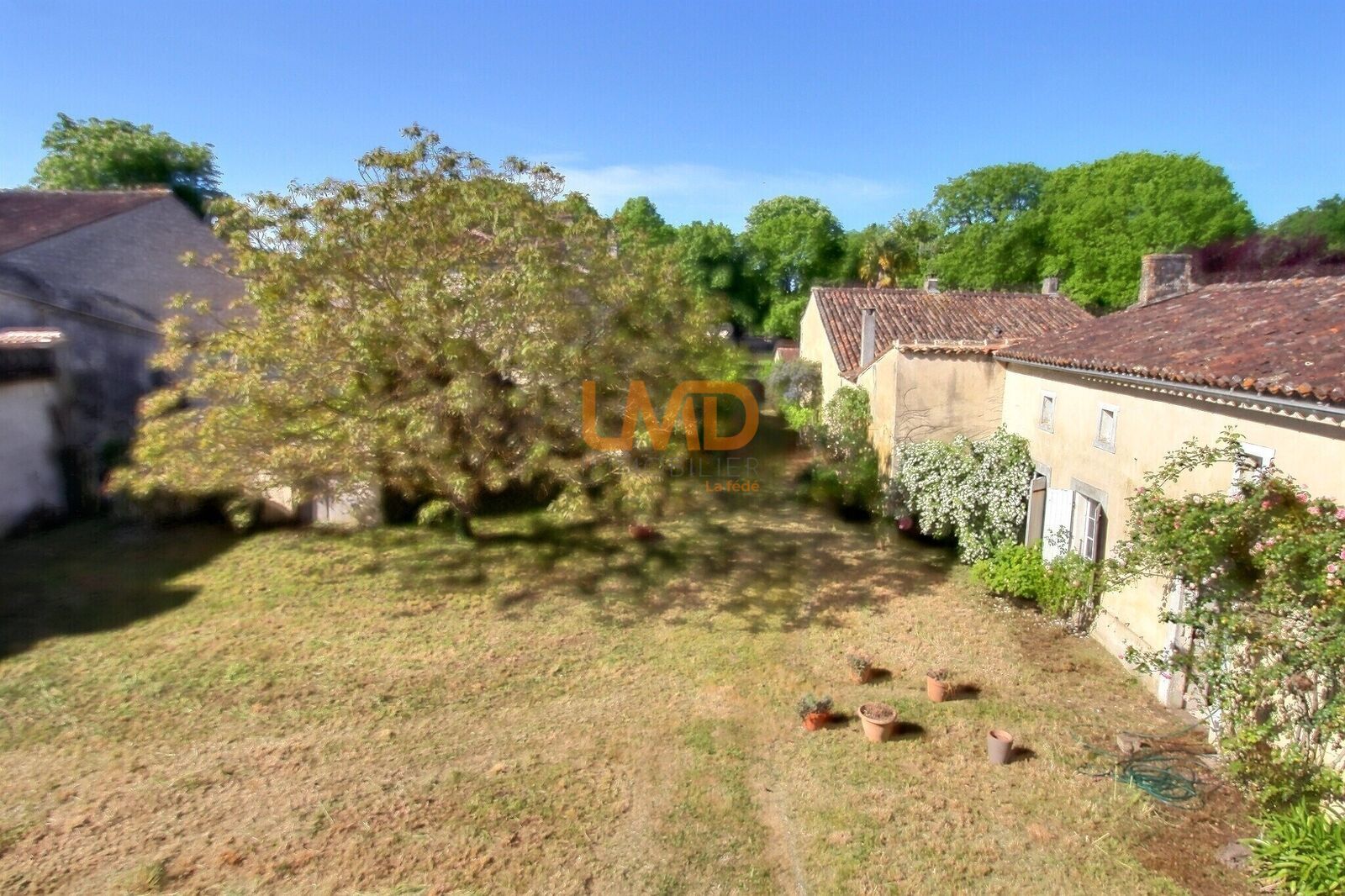L’ensemble est implanté sur une parcelle d’environ 7 184 m², avec cour et espaces extérieurs permettant de multiples usages.