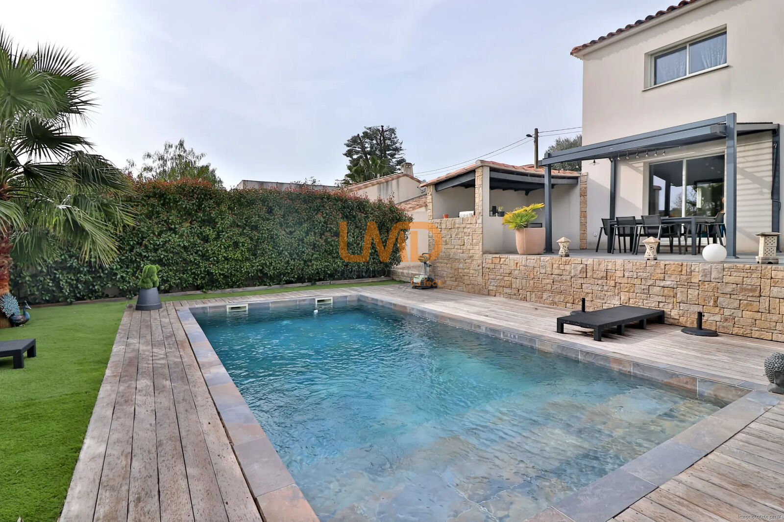 Dotée de très belles prestations, avec climatisation reversible gainable dans toute la maison, volets roulants électriques et éclairages contrôlés par domotique, fibre optique ...
