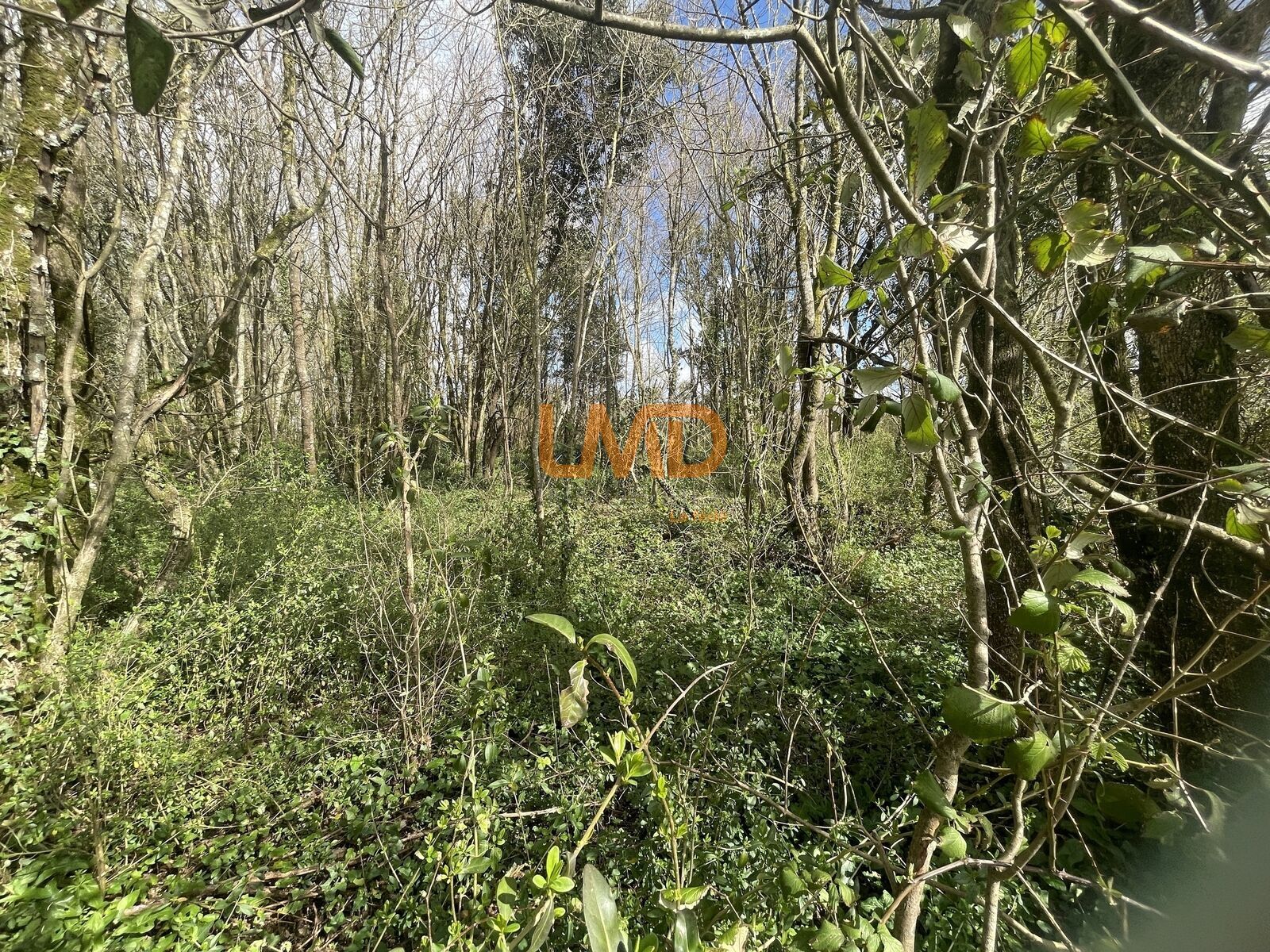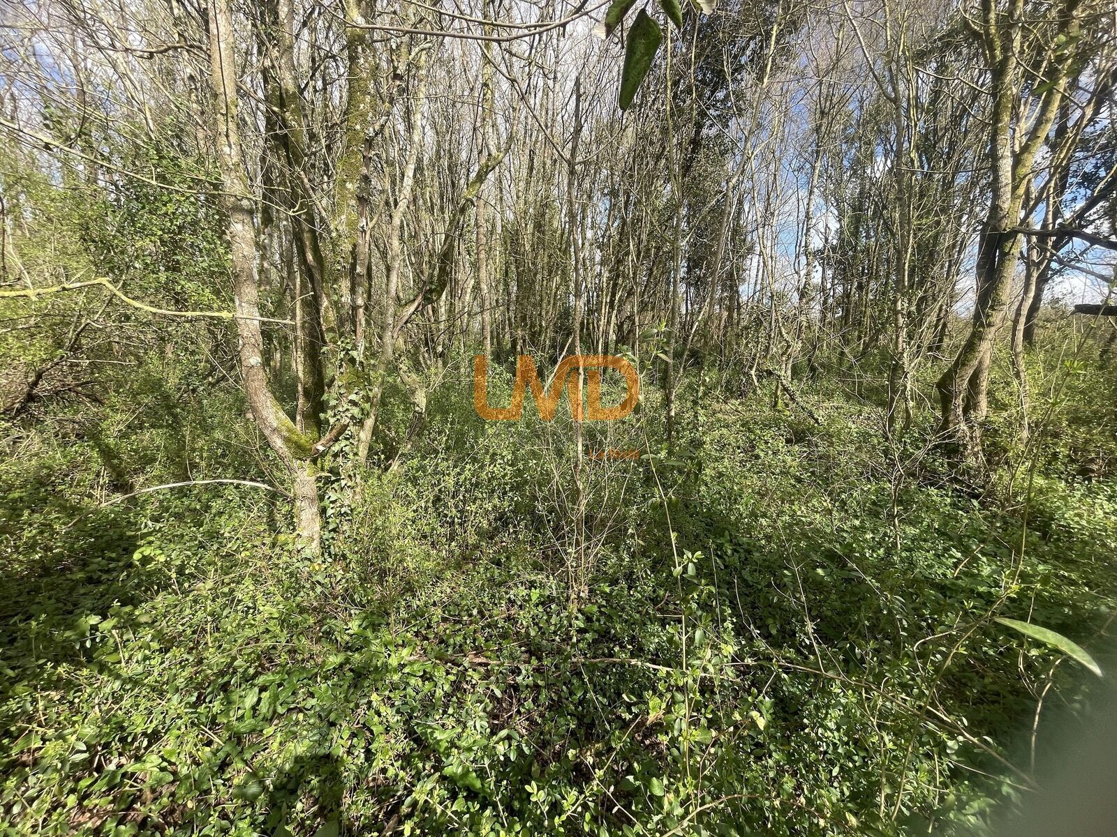 Le terrain est composé principalement de taillis et de petits arbres, offrant un environnement naturel et calme.