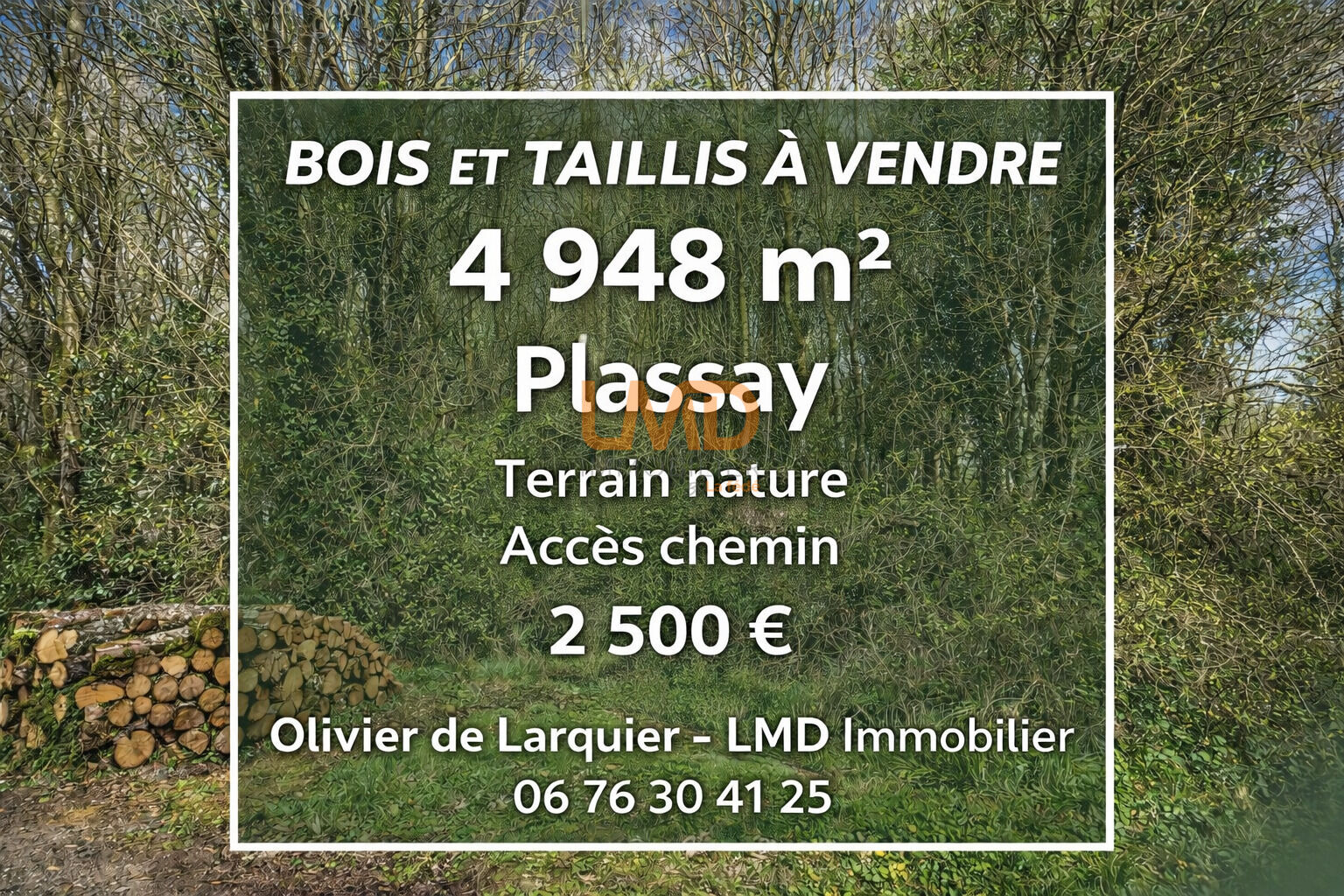 À vendre sur la commune de Plassay (17250), entre Saintes et Pont-l’Abbé-d’Arnoult, parcelle boisée d’une superficie de 4 948 m², référence cadastrale : ZK 27 accès par le chemin des Prunelles.