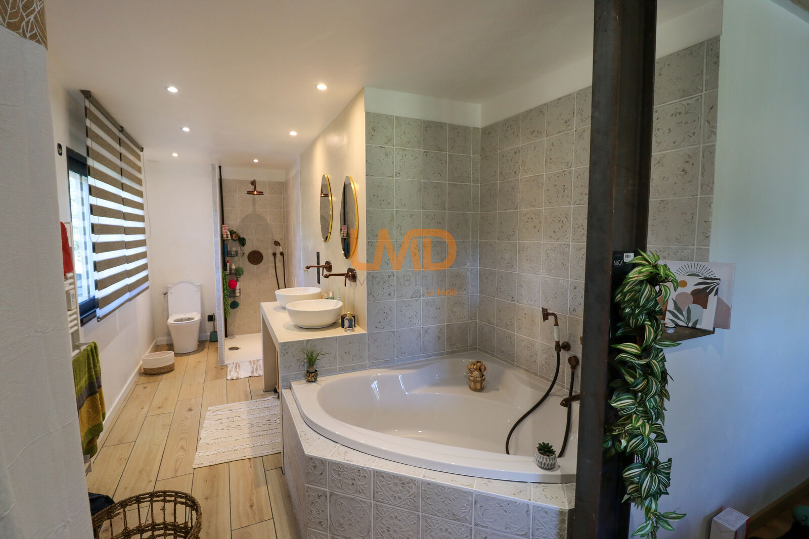 Sur ce même niveau, une suite parentale propose un véritable cocon avec douche, baignoire et toilettes. Un second WC indépendant complète ce niveau.