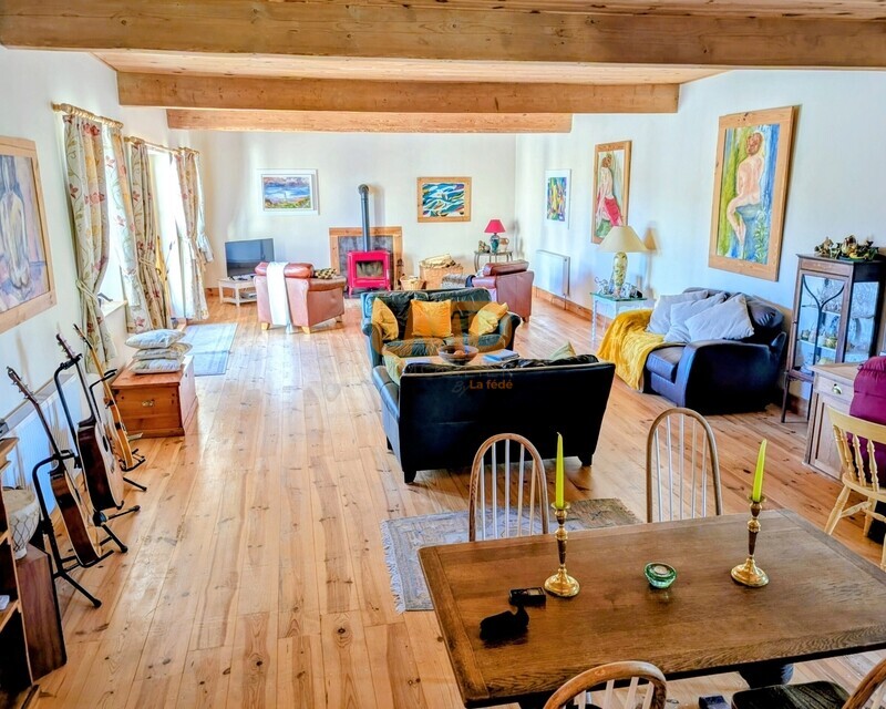 La maison dispose de 3 poêles à bois, de 5 toilettes et 4 salles de bain.