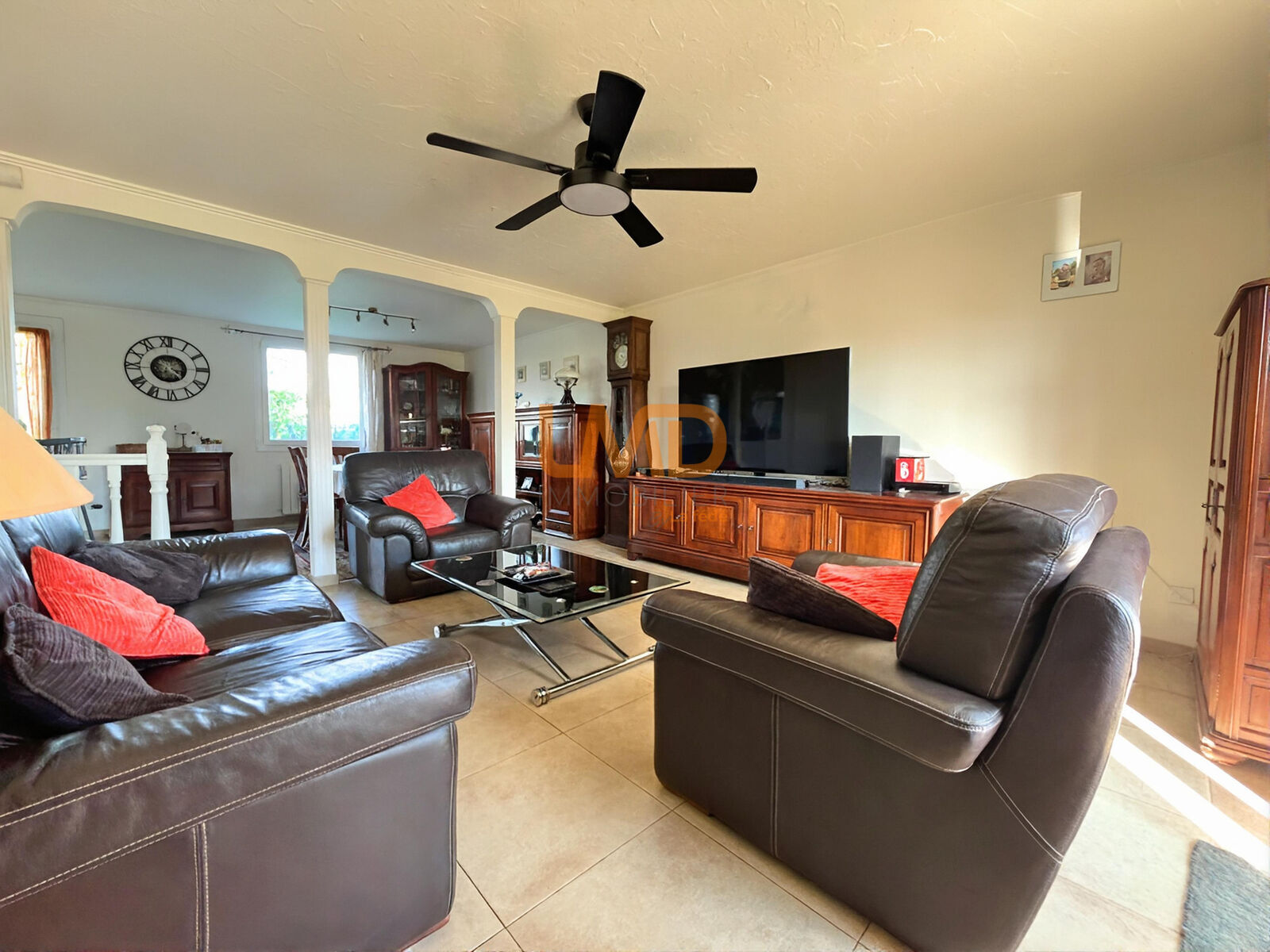 Cette maison des années 1980 se compose de cinq pièces chaleureuses, dont quatre chambres, parfaites pour accueillir une famille ou créer des espaces dédiés à vos envies. Deux salles d’eau et deux WC viennent compléter ce bien, apportant praticité et confort au quotidien. La cuisine, aménagée, équipée et ouverte sur le séjour, favorise la convivialité et les moments partagés en famille ou entre amis. La terrasse attenante prolonge agréablement l’espace de vie, invitant à la détente en plein air.