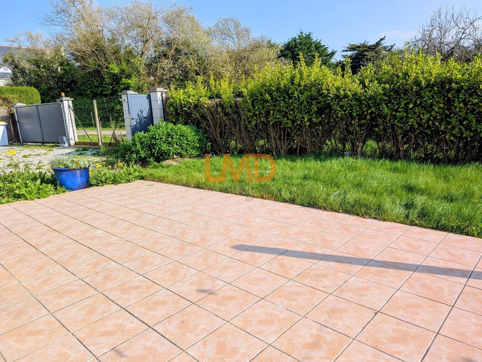 La terrasse est bien exposée afin de profiter des journées ensoleillées sur un terrain de 382 m2.