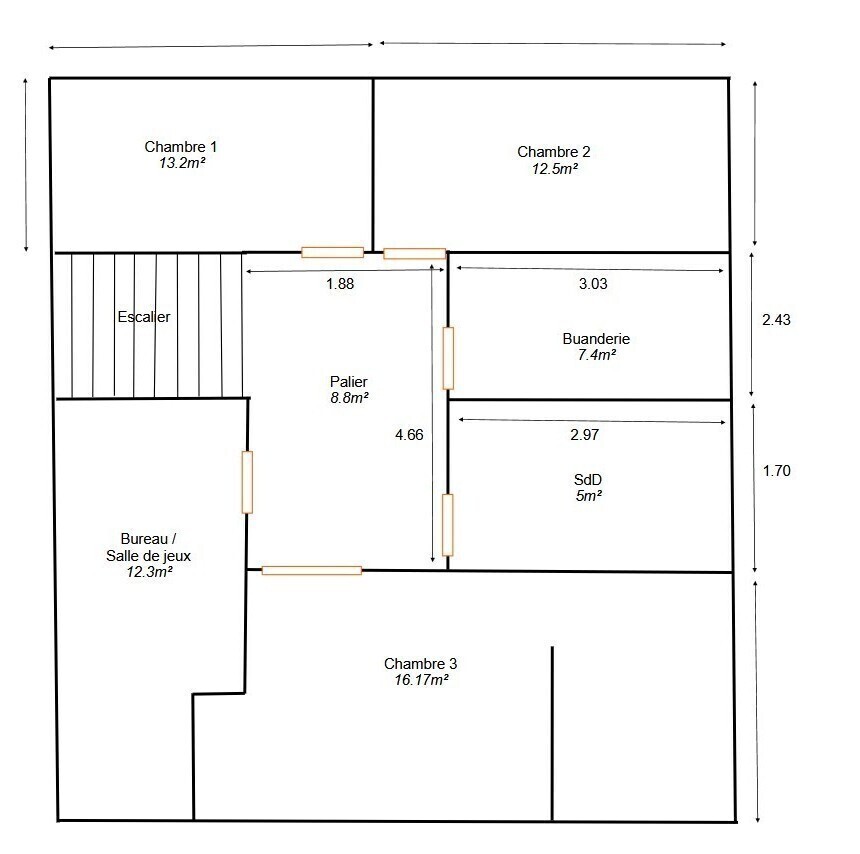 À l’étage, c'est trois chambres confortables, une salle d’eau avec toilette, une buanderie spacieuse, un palier généreux, propice à un espace de jeux ou de détente, et une pièce supplémentaire à aménager selon vos besoins (bureau, espace télétravail, salle de jeux ou chambre d’appoint).