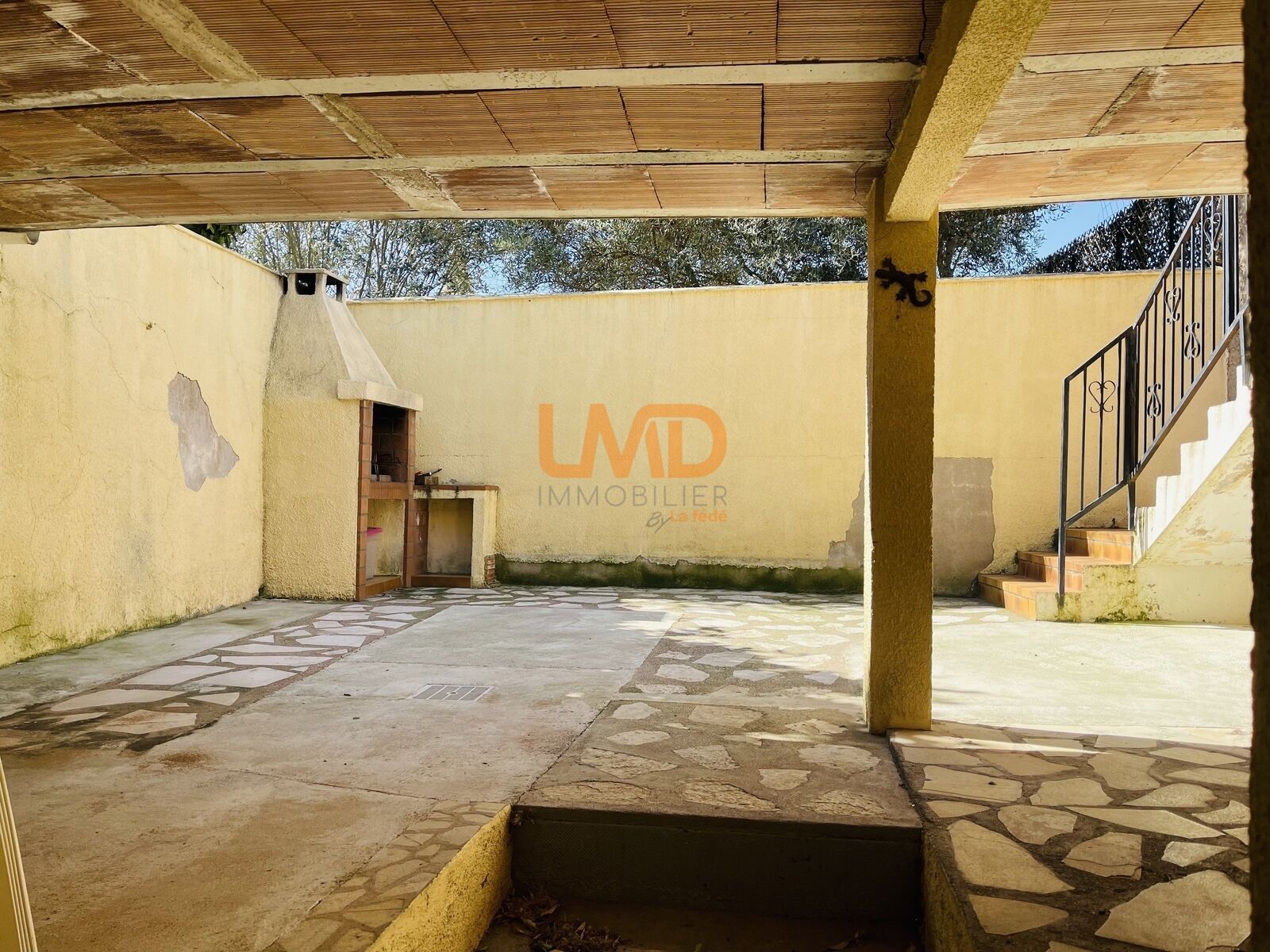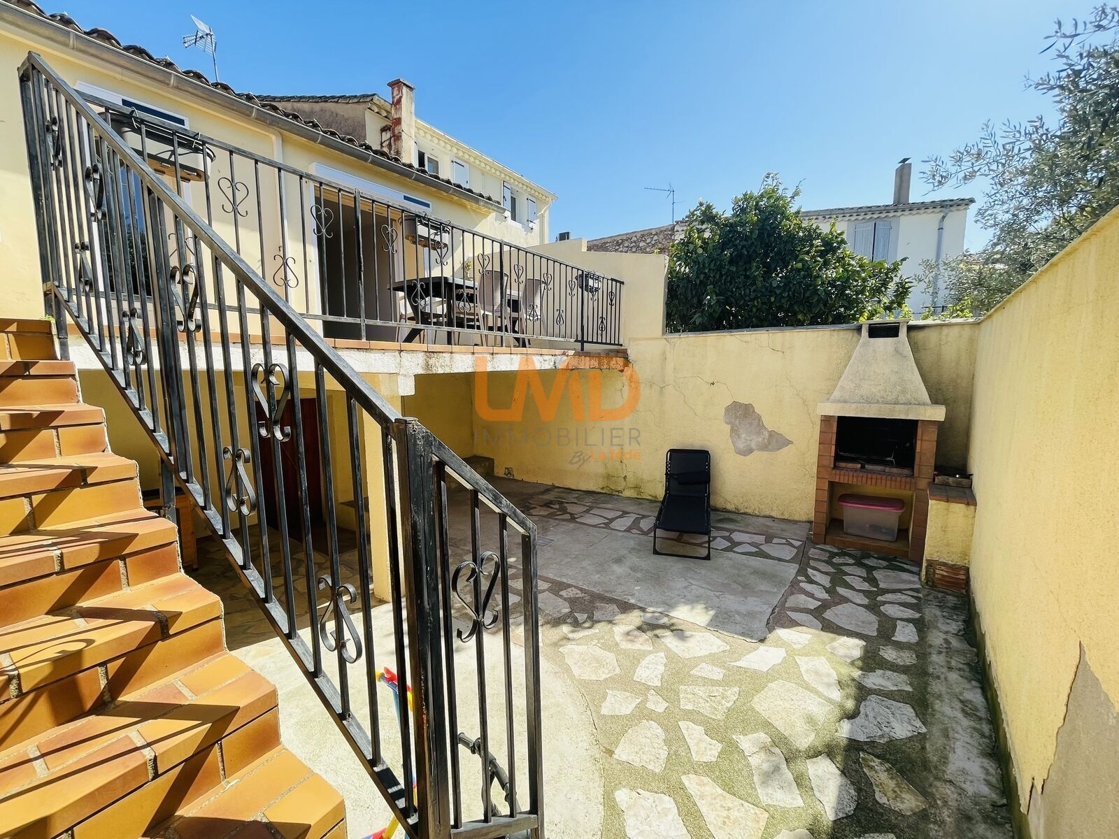 La propriété bénéficie d’une cour d’environ 43 m² avec barbecue, sans vis-à-vis, dans un environnement calme.