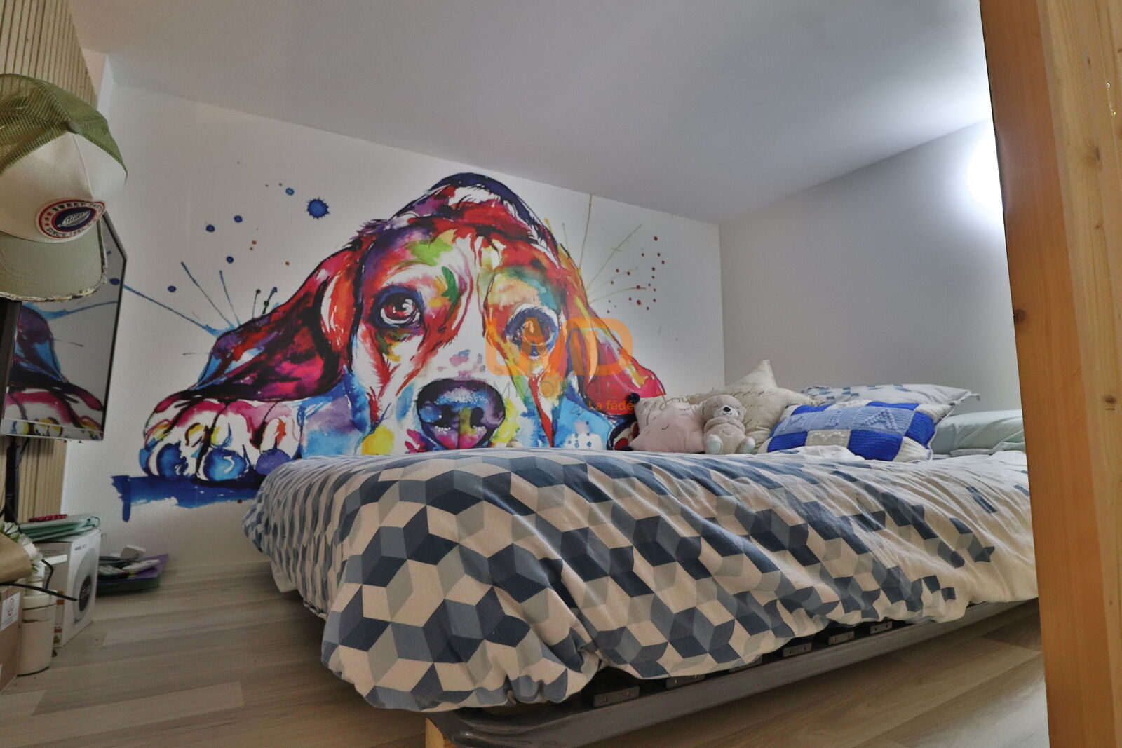 A l'étage, cinq chambres toutes aussi agréables les unes que les autres dans un univers adapté à chacun. Une suite parentale avec deux dressing et salle de bains/toilette. Une chambre très originale avec une fresque et du rangement incroyable. Deux autres chambres avec mezzanine, poutres apparentes, pierres et leur propre salle d'eau et WC. Un bureau ou petite chambre avec salle d'eau.