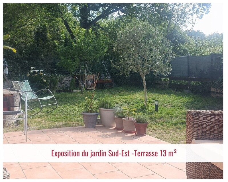 À l’extérieur, la terrasse prolonge naturellement la maison vers un jardin avec son puits, exposé Sud-Est, le tout sur une parcelle de 268 m². Un espace juste, facile à vivre, où l’on profite autant des beaux jours que du quotidien, seul, à deux… ou avec un animal.