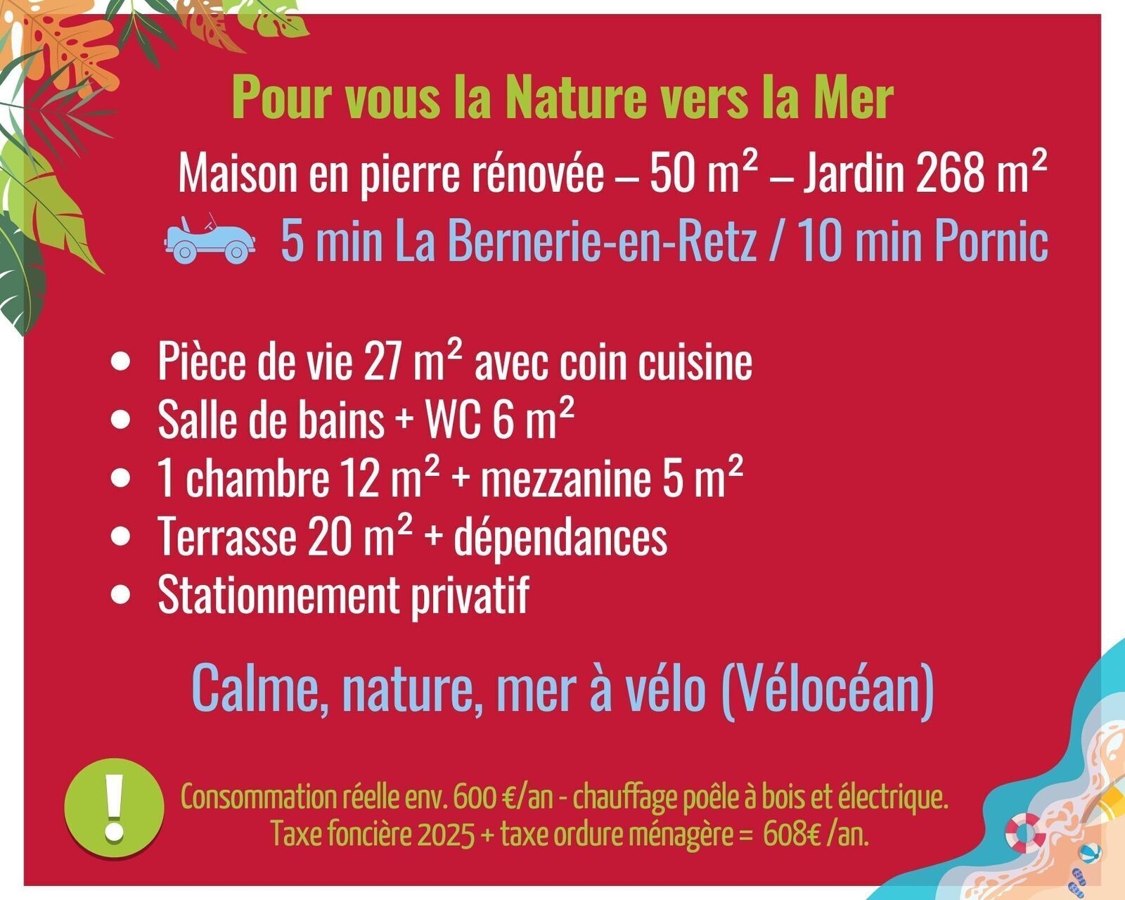 Cette charmante maison, s’adapte à plusieurs projets selon vos attentes : résidence principale simple et fonctionnelle, pied-à-terre proche mer sans contrainte, ou premier achat.
