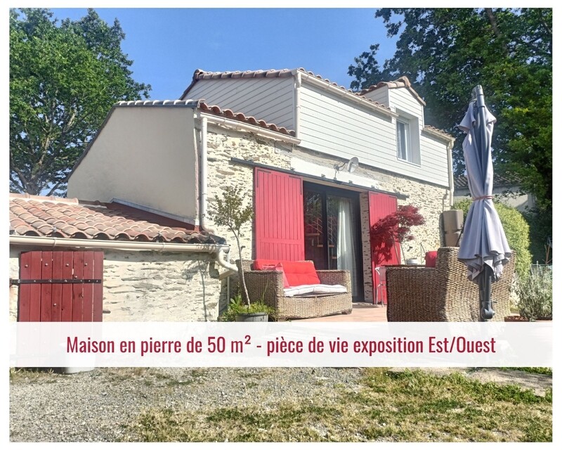 À quelques minutes de La Bernerie-en-Retz et de Pornic, cette maison en pierre d’environ 50 m² offre un équilibre rare : le calme d’un hameau, la douceur de la campagne, et la mer accessible à vélo.